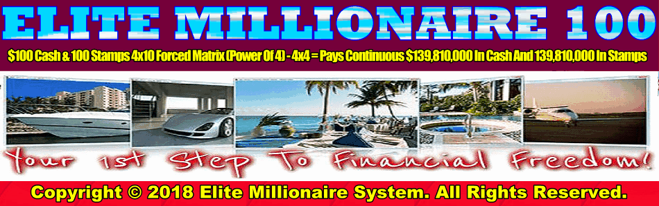 It's time for a change. Time for a revolution. Time to change the way you earn! "ELITE MILLIONAIRE 100" is finally here.