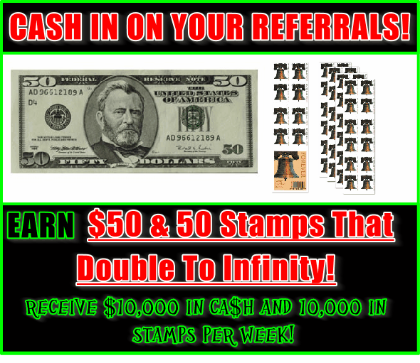 But don't worry you are about to start your Own endless $50 Cash & 50 Stamps that will double and keep on Doubling to Infinity.